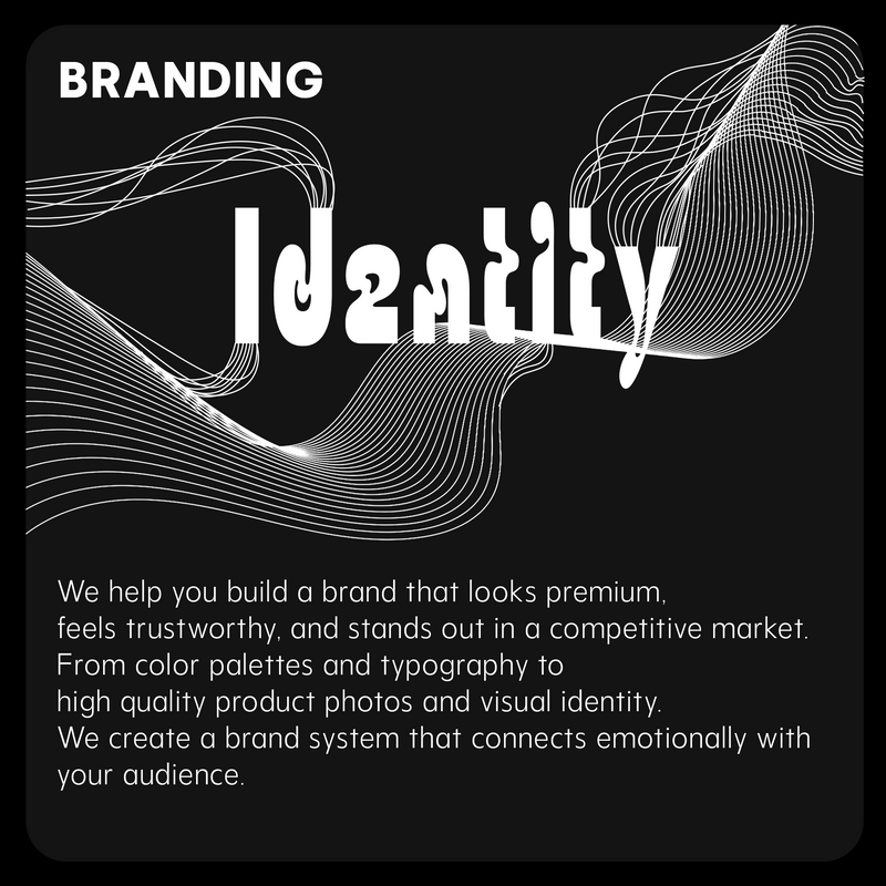 We craft a unique and memorable identity that sets your brand apart — from colors and typography to visual direction and tone. Designed to build trust, elevate your presence, and make your brand instantly recognizable.
